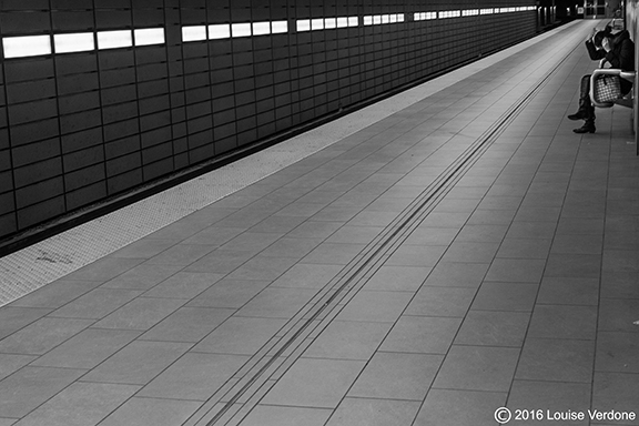 Les tunnels construits sous les villes permettent à des trains de transporter rapidement des passagers d'ici à là. Cette série de photographies saisit des gens sur les plateformes des stations de métro souterraines, plusieurs dans leurs pensées, petites ou grandes. Les photographies ont été prises de 2014 à 2016 dans le Métro de Montréal, Québec, Canada.